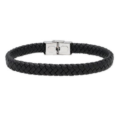 Pulsera para Hombre . Es una pulsera original de la marca Liska , para hombre de la colección Urban. Es un modelo elaborado en cuero genuino de color negro trenzado y acero antialérgico e inoxidable en color plateado. La longitud de la correa es de aproximadamente unos 21 cm y el cierre es de tipo seguridad. Ancho de piel 7,80mm.