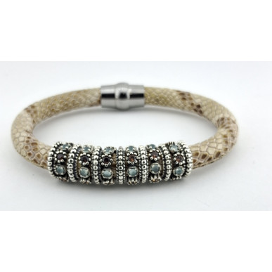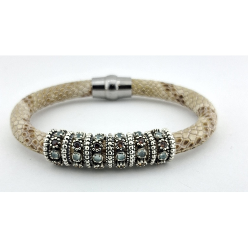 Pulsera para mujer en plata de 1ª ley 925 mls con abalorios en plata y piedras de varios colores de la marca Top Silver, y piel redonda de 6,75mm de diametro cierre en acero y con un potente iman.