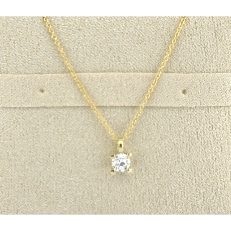Collar del conjunto MINIMAL fabricado en oro amarillo de 9 quilates y engastado con un diamante talla brillante redondo de 5 mm. ( 0,50ct )