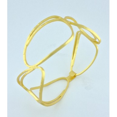 Pulsera tipo esclava modelo PER para mujer fabricado artesanalmente en plata de 1ª ley 925 mls con baño de oro amarillo con forma irregulares , terminado en martele , de medida ancho 30,00 mm en definición . Cierre de gancho.