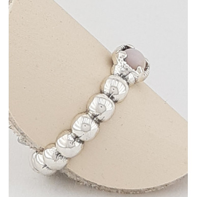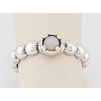 Anillo para mujer en plata de 1ª ley 925 mls de la marca Top Silver, anillo en forma de bolas de 4mm de ancho con una piedra Calcedonia cabujón. Talla 14 tatum.