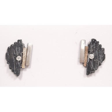 Pendientes para mujer en plata de 1ª ley 925 mls, pendientes en forma de textura terminado en matizado y con un toque en oro de 1ª ley 750 mls con una medida 16,50 x 11,00mm y con un diamante de 0,01 kilates engastado , cierre de presión.