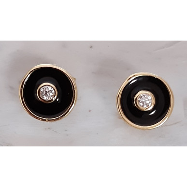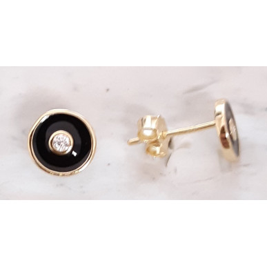 Pendientes para mujer en plata de 1ª ley 925mls , con esmalte en color negro y baño de oro amarillo ,con circonitas blancas , de diámetro 7,00 mm cierre a presión.