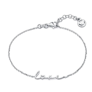Pulsera Love de plata de ley con baño de rodio, motivo love