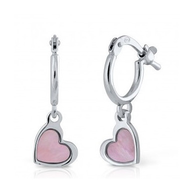 Pendientes de plata de 1º ley 925 mls ,con motivo corazón en nácar natural en color rosa .