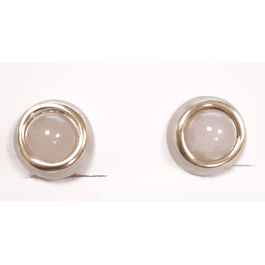 Pendietes para mujer en plata de 1ª ley 925mls y con un circulo en oro de 1ª ley 750mls engastada una piedra natural cuarzo rosa,medida del pendiente 15,50 de diámetro, con cierre de omega.