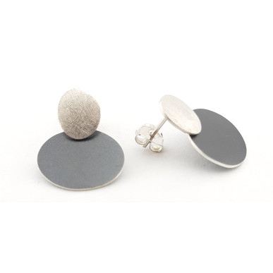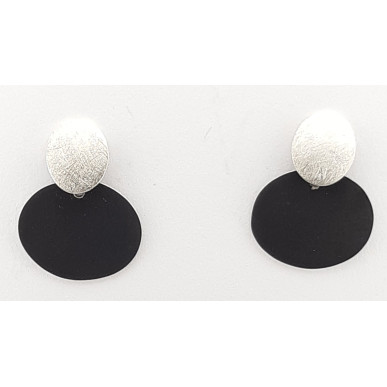 Pendientes para mujer en plata de 1ª ley 925 mls, pendientes en forma geometrica en ovalos terminado en plata oxidada y en plata satinada , medida 22,00 x 17,000mm , cierre a presión.