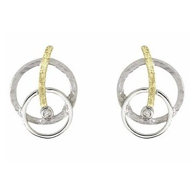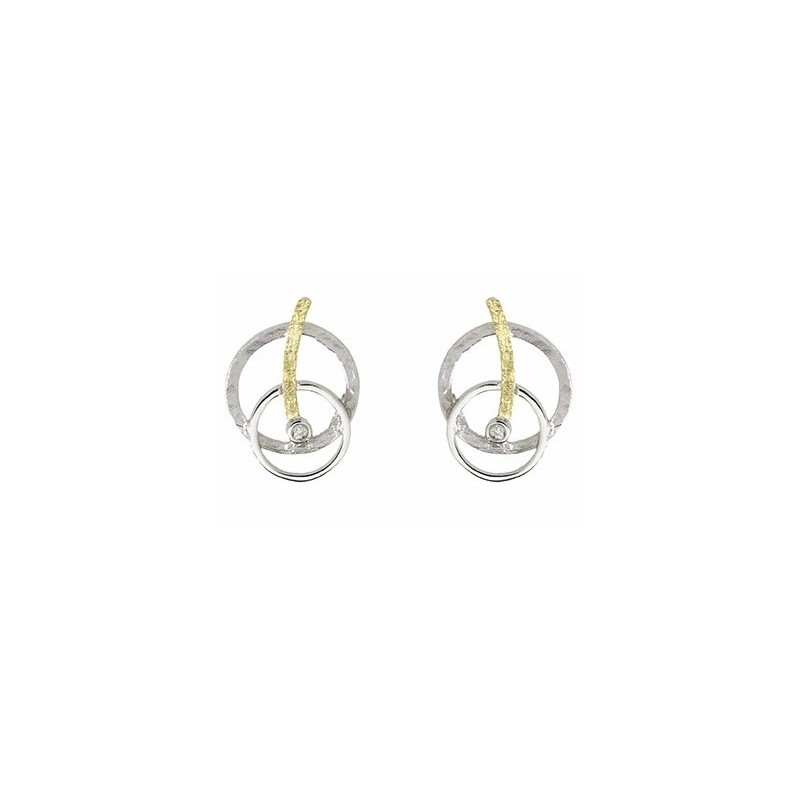 Pendientes para mujer con cierre omega fabricados en plata rodiada, oro de 18k y brillante de 0.030 ct. La esencia de la sencillez y la elegancia. Tamaño 18,50x14,00 mm.