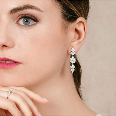 Pendientes para mujer colección BODA ,Pendientes de plata de primera ley (925) con baño de rodio y circonita blanca. (largo: 4,2 cm.) cierre a presión.