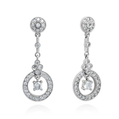 Pendientes para mujer colección BODA ,Pendientes de plata de primera ley (925) con baño de rodio y circonita blanca. (largo: 41,00mm ) cierre a presión.