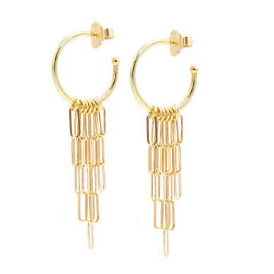 Pendientes fabricados en plata de 1ª ley 925 mls con baño de oro amarillo, pendientes tipo aros de tubo redondo y con 7 cadenas de eslabones .