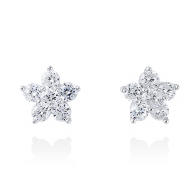 Pendientes en forma de estrella de plata de primera ley (925) con baño de rodio y circonita blanca. (tamaño: 1 cm.) Cierre a presión.