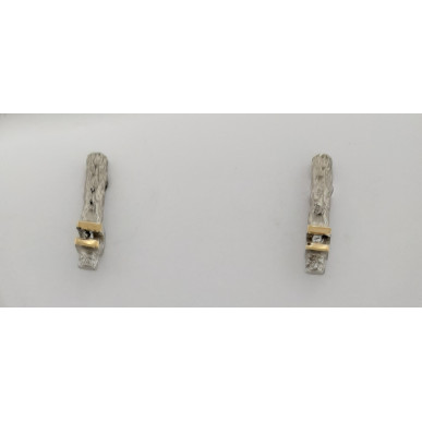 Pendientes para mujer en plata de 1ª ley 925 mls, pendientes en de textura terminado en matizado y con un toque en oro de 1ª ley 750 mls con una medida 17 x 3.30mm y con un diamante de 0,02 kilates engastado , cierre de presión.