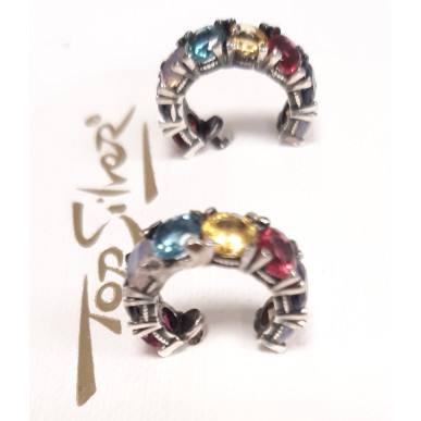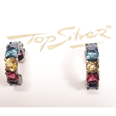 Pendientes tipo aros para mujer en plata de 1ª ley 925 mls de la marca Top Silver, con circonitas de colores talla redonda .