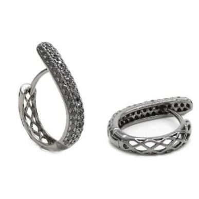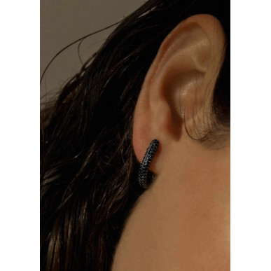 Pendientes aros con piedras plata de 1ª ley 925 mls para mujer. Pendientes de moda elegantes que destacaran en tu oreja. Pendientes de plata finos de diseño brillante en rutenio negro formados por un engaste de circonitas completo. La forma del pendiente envuelve el lóbulo y la convierte en una joya cómoda y segura. Una joya que aporta brillantez y elegancia a tu outfit y que no puede faltar en tu joyero. Medida 15 mm de diámetro y 3 mm de grueso cierre catalan