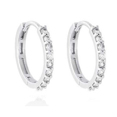 Pendiente ARO LARGE en Oro blanco 18Kt y diamantes Referencia A2503P Pendiente de Oro blanco de primera ley (750/1000) con 9 diamantes de peso total 0,11 qt. (Color: Top Wesselton (G) Pureza: SI). (diametro exterior: 13,5 mm.) Pendiente y Piercing de Aro de Brillantes. Realizado en Oro Blanco de primera Ley (18 quilates) en nuestro propio atelier y siguiendo los más altos estándares para la fabricación de alta Joyeria. Ha sido engarzado a mano con 9 Diamantes a cada pendiente Naturales sobre garras y tras un perfecto pulido ha sido bañado en Rodio para que el Oro Blanco y sus Diamantes adquieran su máximo esplendor. Su forma es un aro completo. Se trata de un diseño eterno que nunca pasará de moda y que podrás lucir siempre que quieras consiguiendo combinaciones con otros piercing realmente espectaculares y llamativas. El aro o criolla de diamantes es siempre uno de los más demandados por tratarse de una joya para perfecta.
