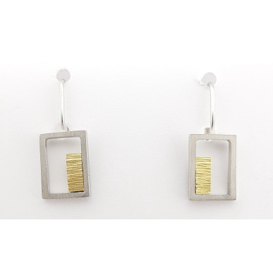 Pendientes para mujer en plata de 1ª ley 925mls, pendiente con dos rectangulos con una medida de 14,00x10,00 mm y otros dos rectangulos más pequeños en baño de oro amarillo con una medida de 7,00x3,00mm ,cierre en gancho tipo Hippie.