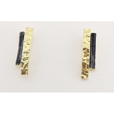 Pendientes para mujer en plata de 1ª ley 925mls con baño de oro amarillo y de rutenio , pendientes doble tira terminado en matizado con una medida de 19,00 mm de largo y cierre a presión.