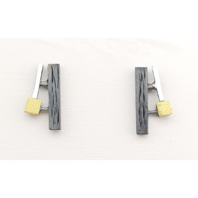 Pendientes para mujer en plata de 1ª ley 925mls ,pendientes doble tira terminado en matizado oxidado y cuadrado en chapado en oro amrillo, con una medida de 16,00 mm cierre de presión