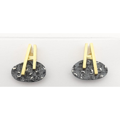 Pendientes para mujer en plata de 1ª ley 925mls chapado en oro amarillo y ovalo en plata oxidada, pendientes terminado en matizado con una medida de 15,60x14,00 mm y cierre a presión.