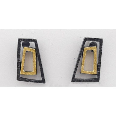 Pendientes para mujer en plata de 1ª ley 925 mls, pendientes en forma geometrica terminado en plata oxidada con un taque en chapado en oro de 1ª ley 750 mls , medida 16,00 x 10,50mm , cierre a presión.
