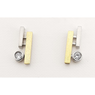 Pendientes para mujer en plata de 1ª ley 925 mls, pendientes terminados en matizado y con un toque en oro de 1ª ley 750 mls con una medida 17 x 7,50mm y con circonita engastada , cierre de presión.
