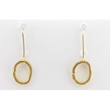 Pendientes para mujer en plata de 1ª ley 925mls, pendiente en forma de ovalo terminado en satinado con una medida de 13x9,60 mm y de largo total 28mm y chapado en oro amarillo,cierre en gancho tipo Hippie.