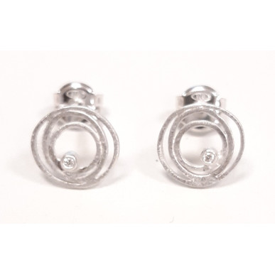 Pendientes de diseño realizados en plata de ley con acabado mate diamantado y baño de rodio.