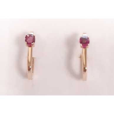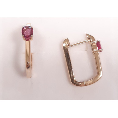 Pendientes para mujer fabricadas en oro rosa de 1º ley 750mls , pendientes tipo aro rectangular con piedra natural ovalada facetada en Rubi de medida 4,60x3.60mm ,.