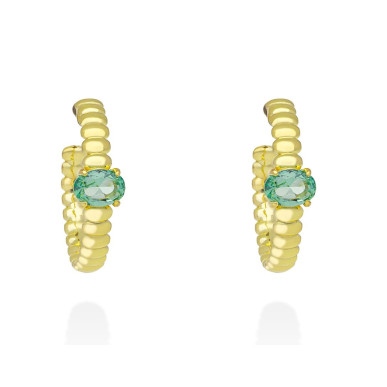 Pendientes de plata de primera ley (925) chapada en oro amarillo de 18kt con piedra sintetica color "verde boreal". (diametro exterior: 2,5 cm.) Pendentes tipo aros .