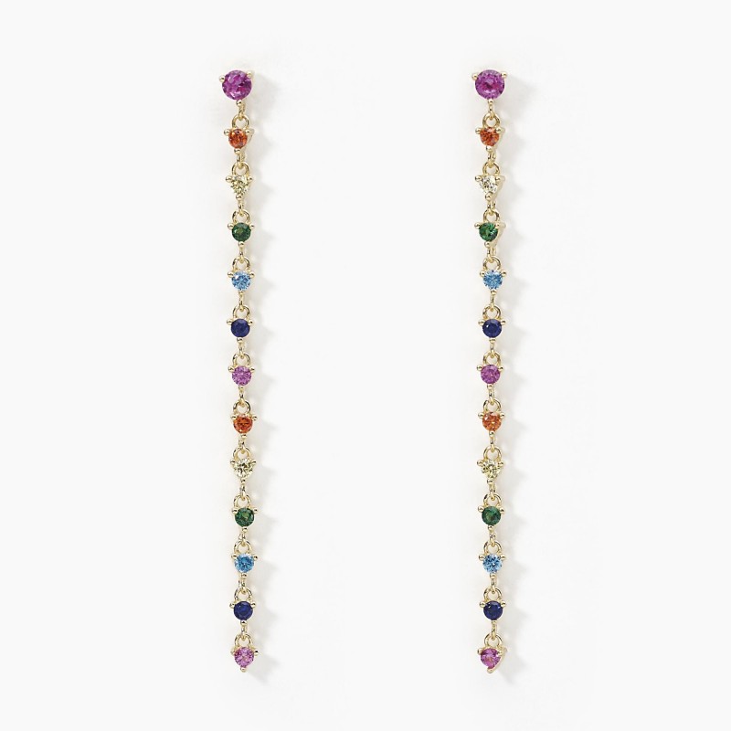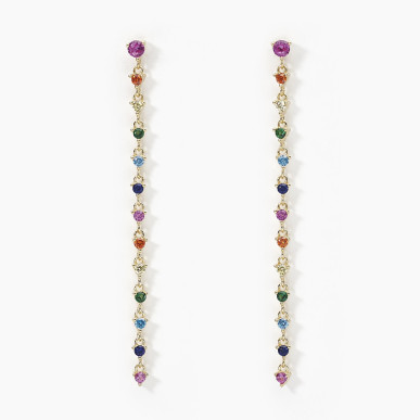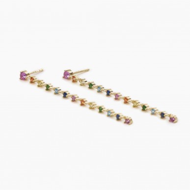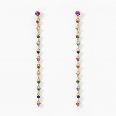 Pendientes de plata bañada en oro de 18k con colgante tenis de circonitas multicolor.