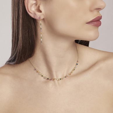 • Engaste de garras de las circonitas • Diámetro de las circonitas: 2,50 y 4 mm • Talla única, largo 6 cm • Material: plata 925, circonitas multicolores • Acabado: baño de oro de 18k