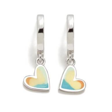 Pendientes de plata de ley y baño de rodio, con esmalte de colores , cierre tipo criolla..