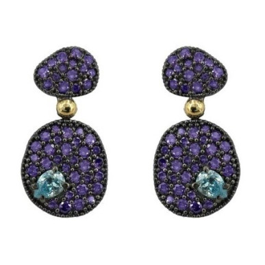 Descubre la colección “PUA” de BOHEMME, una línea de joyería moderna y sofisticada diseñada para la mujer actual. Estos pendientes están elaborados en plata rodiada en negro y oro de 18K, ofreciendo un estilo único y elegante. Destacan sus piedras centrales en color topacio azul en forma de “púa”, rodeadas por un pavé de piedras color amatista, que aportan un toque de alegría y distinción. Perfectas para añadir un brillo especial a cualquier ocasión, las joyas de la colección “PUA” de BOHEMME combinan lo mejor de la tradición y la modernidad. ¡Descubre tu nueva joya favorita hoy mismo!