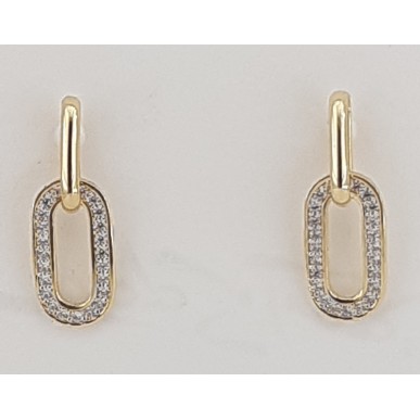 Pendientes con colgante en oro amarillo de 1ª ley 18kts 750mls ,l pendiente con dos anillas ovaladas una con circonitas blancas , medida del pendiente col el colgante 21,00mm alto 7,50mm ancho