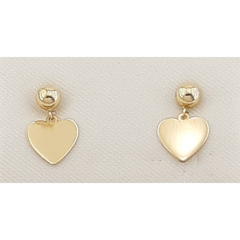 Pendientes con media bola y corazón colgante en oro amarillo de 1ª ley 18ktes 750mls. medida del corazón 8x7mm largo total 13mm cierre con presión.