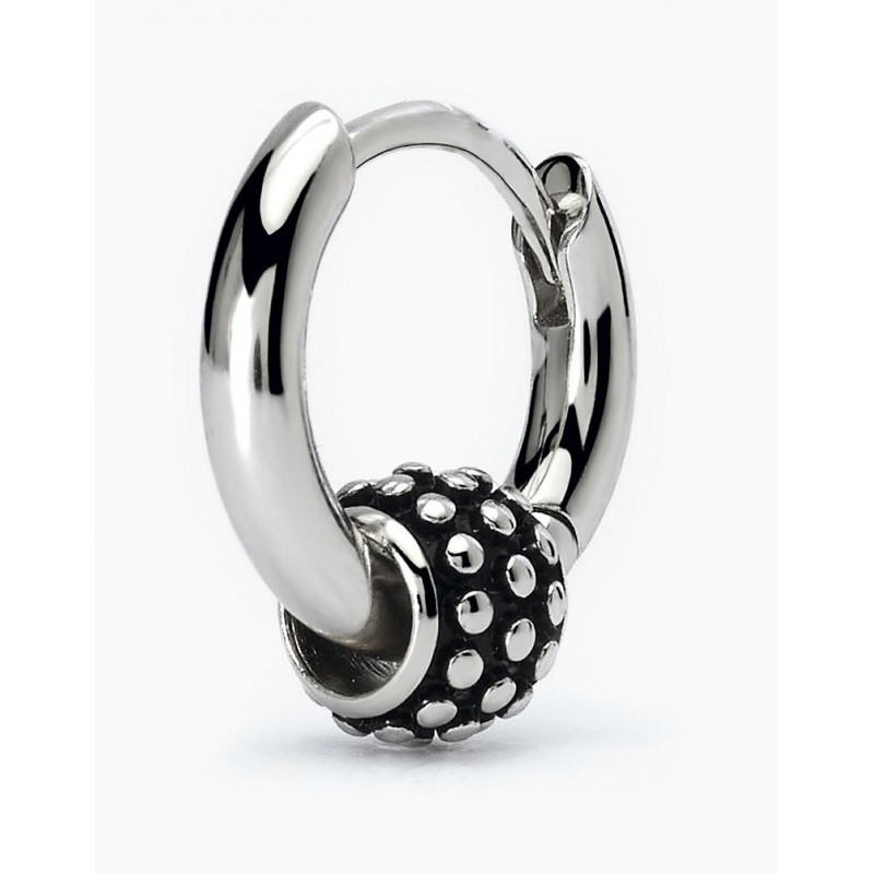 Pendiente de aro para hombre en plata rodiada con charm tachonado. • Talla única • Diámetro del pendiente: 13 mm • Tamaño del charm: 6x5 mm • Material: Plata 925 • Acabado rodiado