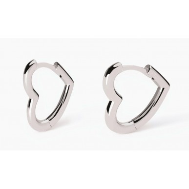 Pendientes de aro para mujer en forma de corazón de plata rodiada. • Tamaño del corazón: 15 x 15 • Material: plata 925