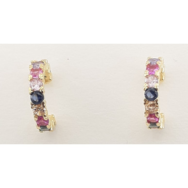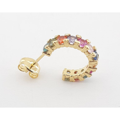 Pendientes tipo aros para mujer en plata de 1ª ley 925 mls con baño de oro amarillo de la marca Top Silver, con circonitas de colores talla redonda .