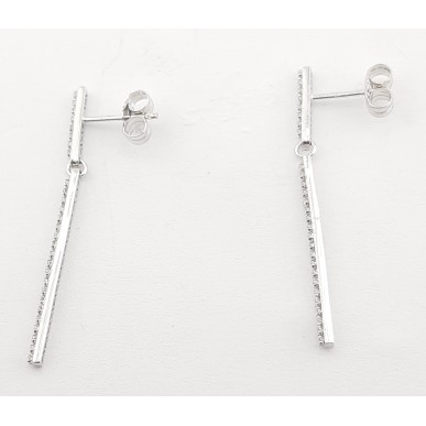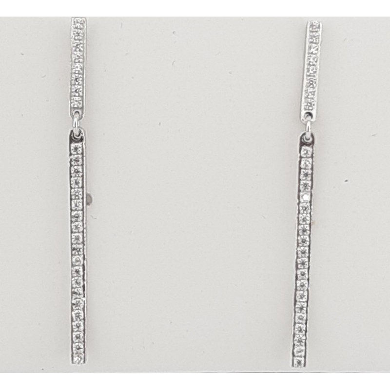 Pendientes en oro blanco de 1ª ley 18ktes 750mls , pendientes colgantes con tira de circonita blanca de un largo total 34mm y de ancho 1.55mm , cierre a presión