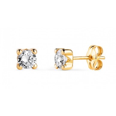 Pendientes fabricados en oro amarillo de 18 kilates (750 milésimas). Pendientes de tipo dormilona compuestos por circonitas blancas de talla brillante engastadas en cuatro garras circonita mide 4,00 mm. Tienen acabado pulido y llevan cierre de presión.