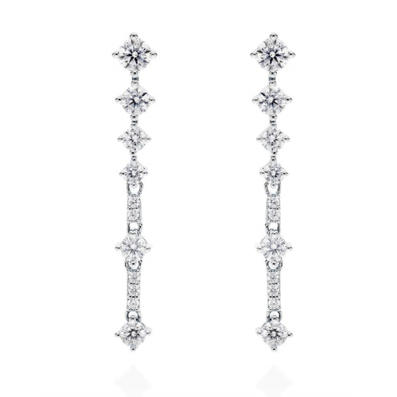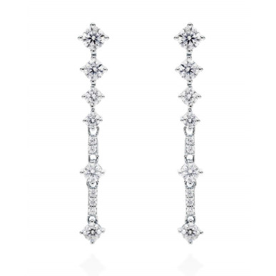 Pendientes de plata de primera ley (925) con baño de rodio y circonita blanca. (largo: 2,5 cm.)