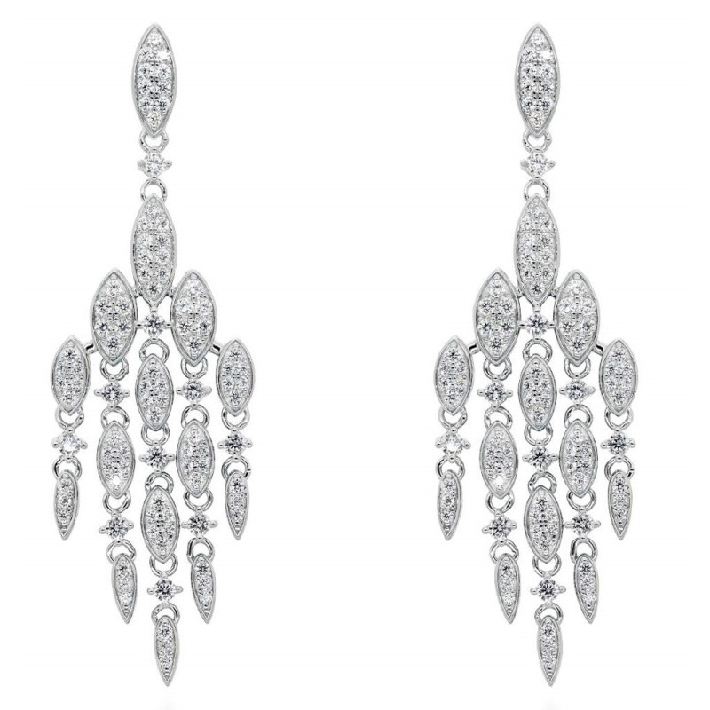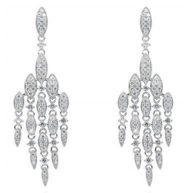 Pendientes de plata de primera ley (925) con baño de rodio y circonita blanca. (tamaño: 5,7 x 1,7 cm.)