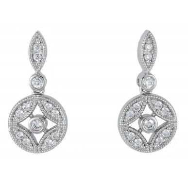 Pendientes de plata de primera ley (925) con baño de rodio y circonita blanca. (tamaño: 2,2 cm.)