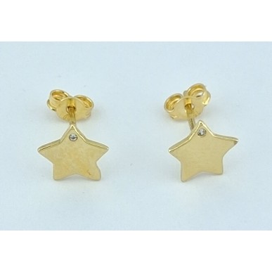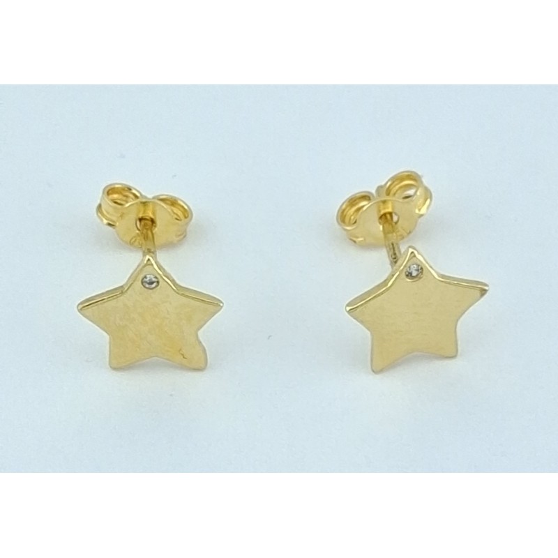 Pendientes para mujer en oro amarillo de 18kilates 750mls , pendientes de forma de estrella con una circonita blanca en una de las puntas de la estrella , cierre a presión , medida alto x ancho 7,20x7,20mm