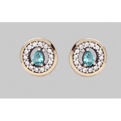 Pendientes para mujer fabricado en oro de 9 kts y plata de 925 mls , orla en circulo de medida 10,60mm de diámetro y piedra calcedonia y verde , cierre a presión .