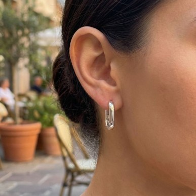 Elegantes pendientes de aro con forma de eslabón ovalado, fabricados en plata de ley 925 de alta calidad. Diseñados como base versátil para personalizar con dijes o lucir de forma minimalista, cuentan con un acabado protector de rodio.