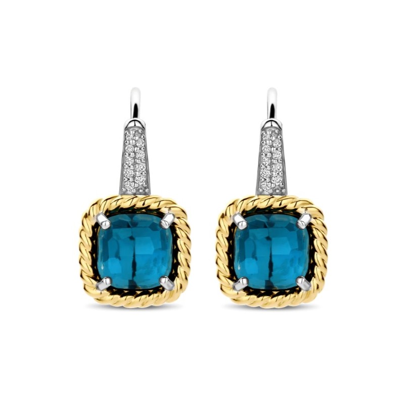 Acerca de esta joya Luce un estilo audaz y elegante con estos pendientes TI SENTO 78042DB de plata chapada en oro. Elaborados en plata de ley 925, estos pendientes de cierre de palanca presentan vibrantes piedras translúcidas de color azul oscuro con forma de cojín, facetadas para reflejar la luz con un brillo sutil. Los engastes de oro amarillo trenzado les confieren una riqueza de inspiración vintage, mientras que los ganchos chapados en platino, engastados en pavé con circonitas cúbicas blancas de talla brillante, añaden un brillo refinado y un contraste elegante. Su forma escultural y su tono intenso aportan profundidad y personalidad a cualquier look. Sin níquel e hipoalergénicos, estos pendientes ofrecen comodidad durante todo el día y un brillo atemporal.