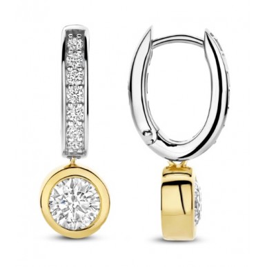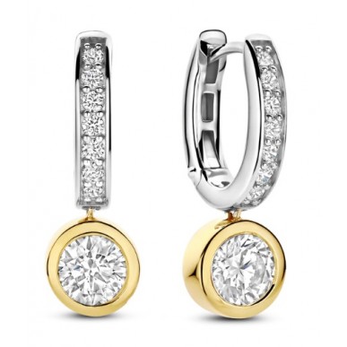 Luce un brillo refinado con estos pendientes TI SENTO de plata chapada en oro 78032ZY. Elaborados en plata de ley 925, estos elegantes pendientes presentan una hilera de circonitas cúbicas blancas engastadas en pavé a lo largo de los aros chapados en platino, junto con solitarios de talla brillante suspendidos en un bisel liso de oro amarillo. Las gotas circulares se mueven suavemente contigo, captando la luz desde todos los ángulos para un toque de luminosidad atemporal. Sofisticados y versátiles, son perfectos para realzar tus looks de diario o añadir un toque de glamour a tus conjuntos de noche. Sin níquel e hipoalergénicos, garantizan comodidad durante todo el día con un brillo duradero.