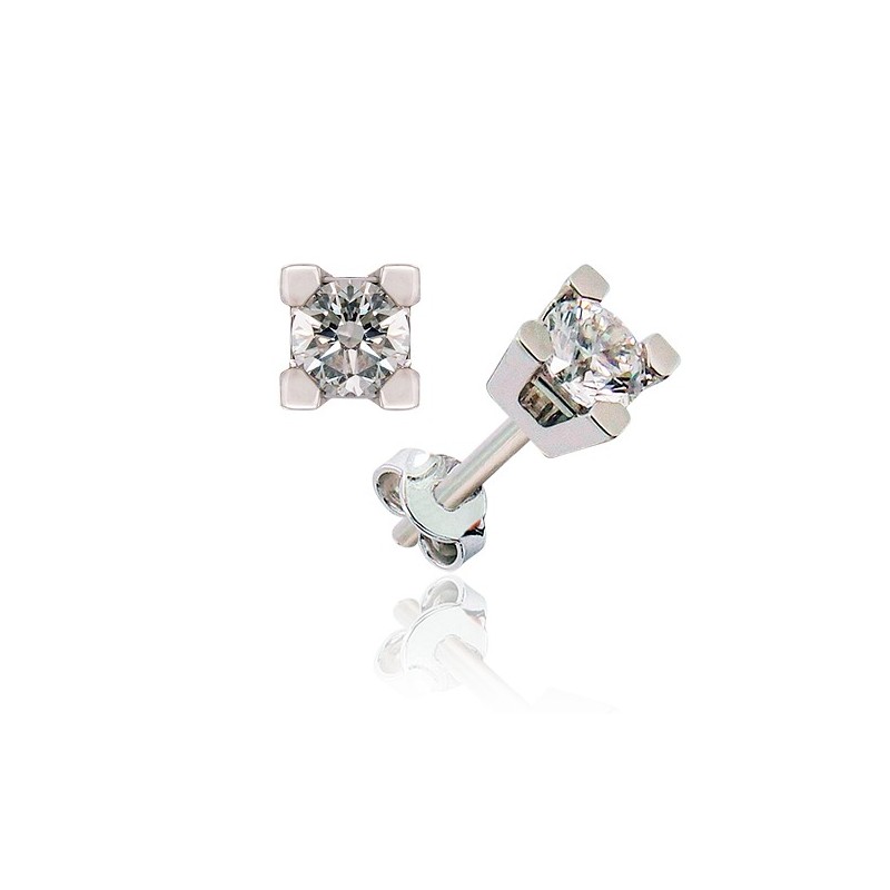 Pendientes fabricados en oro blanco de 1ª ley 18kiltes 750mls y en cuatro garras con 2 diamantes talla brillante con un peso total de 0,14 cts y cierre de presión.